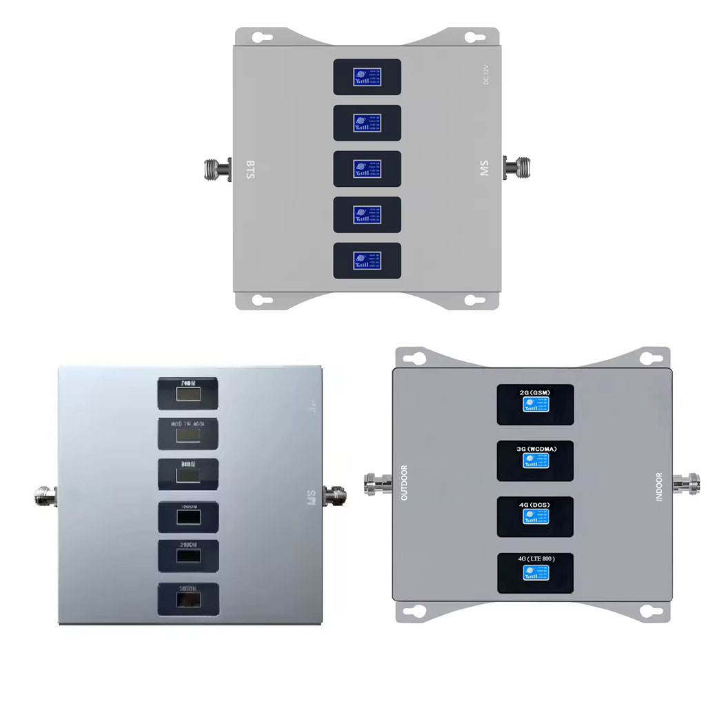Product description Five Band Mobile Cellphone Network Signal Booster Repeater Function Signal extender Application Village, garage, home, basement, parking lots, tunnels, hotels, office, warehouse, building Working network GSM 2G 3G 4G LTE Working frequency 700/800/850/900/1800/1900/2100/2600/AWS1700/2100MHz B28/B20/B5/B8/B3/B2/B1/B7/B4 frequency band optional Option (1) 800/900/1800/2100/2600MHz (B20/B8/B3/B1/B7 band) (2) 850/900/1800/2100/2600MHz (B5/B8/B3/B1/B7 band) (3) 700/900/1800/2100/2600MHz (B28/B8/B3/B1/B7 band) (4) 700/850/1900/AWS1700/2100/2600MHz (B28/B5/B2/B4/B7 band) Gain 60~70dBi Max. Output Power 20±3dBm Impedance 50 ohm Noise Figure ≤4dB Time Delay ≤0.5us Power supply AC 110/220V DC12V Coverage 100~500sqm without barrier Installation type Wall installation Operating temperature -10℃~+60℃ Power plug EU/US/AU/UK standard optional Connector type N female